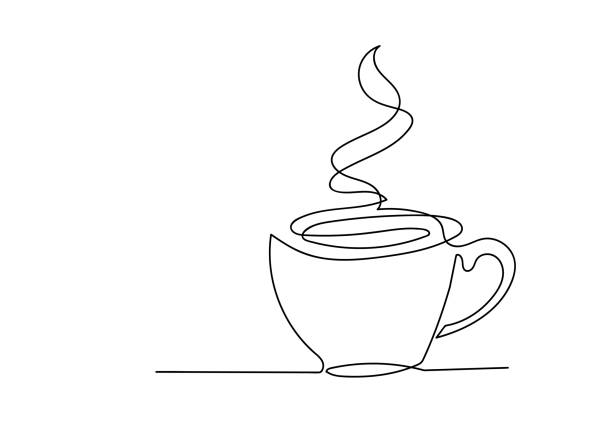 Continuous one line drawing of cup of coffee. Vector illustration.
